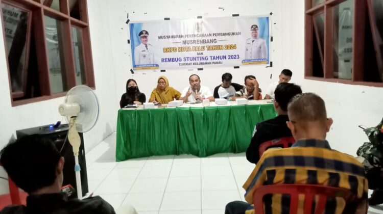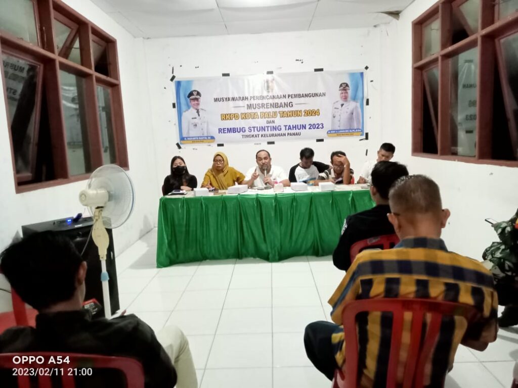 Dengan agenda pembahasan Rencana Kerja Pemerintah Daerah (RKPD) Kota Palu Tahun Anggaran 2024 dan Rembug Stunting 2023, Kelurahan Panau laksanakan Musyawarah Perencanaan Pembangunan (Musrenbang) tingkat Kelurahan, Sabtu (11/02). Kegiatan ini dilaksanakan di Kantor Kelurahan Panau, dengan dihadiri sejumlah pejabat dilingkup pemerintahan Kota Palu, Kecamatan Tawaeli dan Kelurahan. Di antaranya Camat Tawaeli, Kepala Seksi Ekonomi Pembangunan Kecamatan Tawaeli, Ketua LPM, RT dan RW Lingkup Kelurahan Panau, serta Kepala OPD terkait di lingkup Kota Palu.